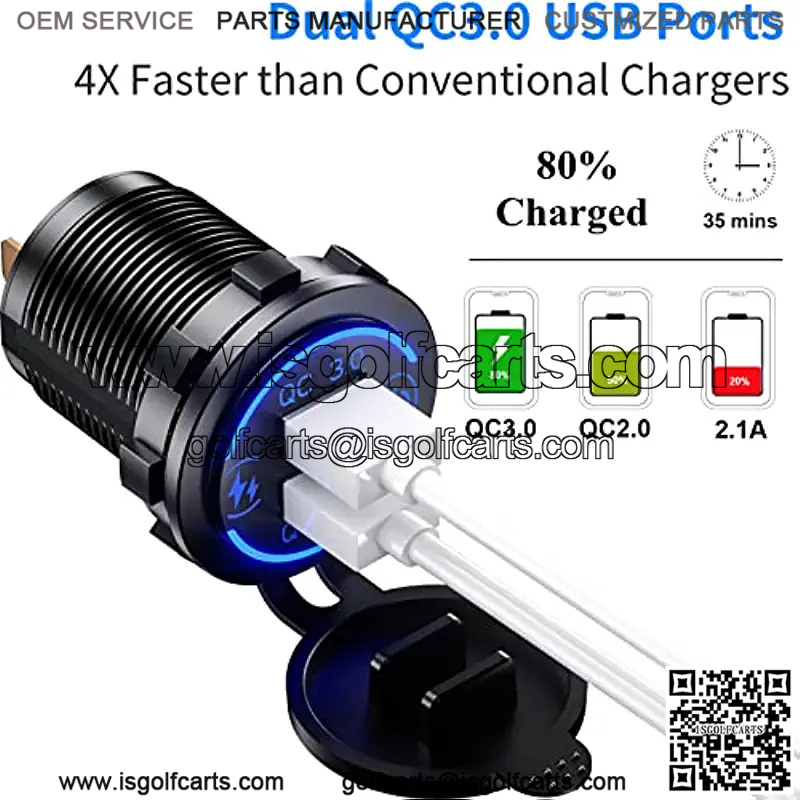 ?? Wide Compatibility ?? Quick charge 3.0 dual USB charger socket DIY kit fit for DC 12V – 24V car, boat, marine, golf cart, ATV, RV etc. This USB socket is suitable for charging cellphones, tablets, power banks, video games controllers, sports watch and other digital equipment.