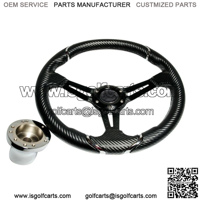 Volt Carbon Fiber Golf Cart Steering Wheel W/ Club Car DS Hub Adapter Chrome
