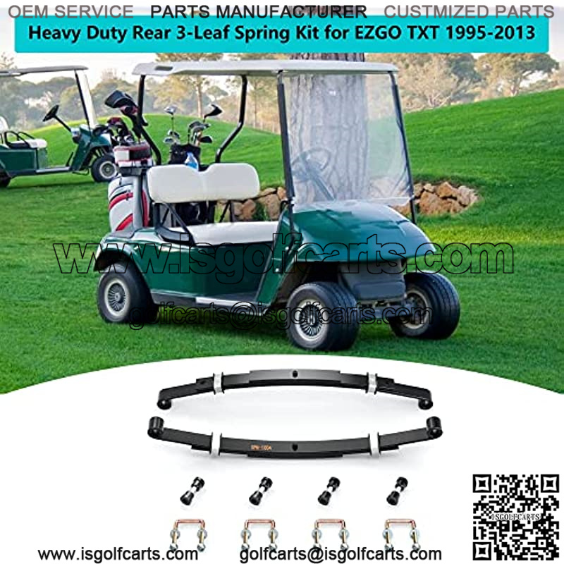 This is a Deluxe Rear Heavy Duty 3-Leaf Springs Kit fits for EZGO TXT 1995 to 2013 Golf Carts, Easy Install – Tools Required.