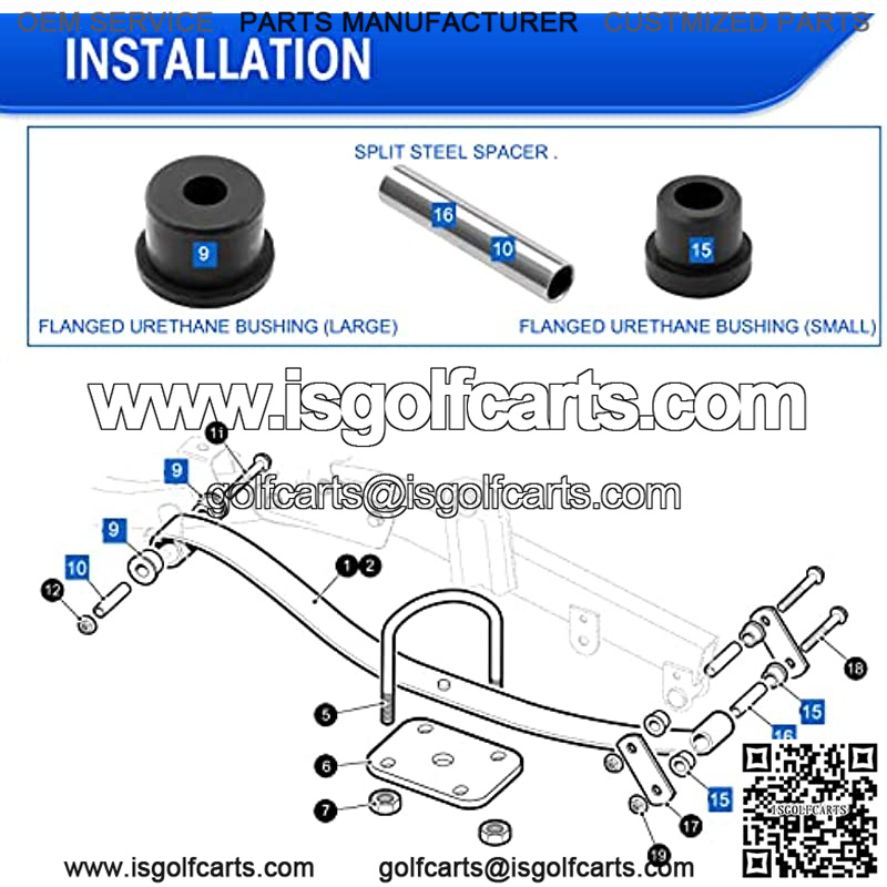 Rear Leaf Spring Shackle Bushing Sleeves Kits for EZGO RXV 2008-up Gas/Electric Golf Cart Models Replaces OEM # 620160, 620161, 624030