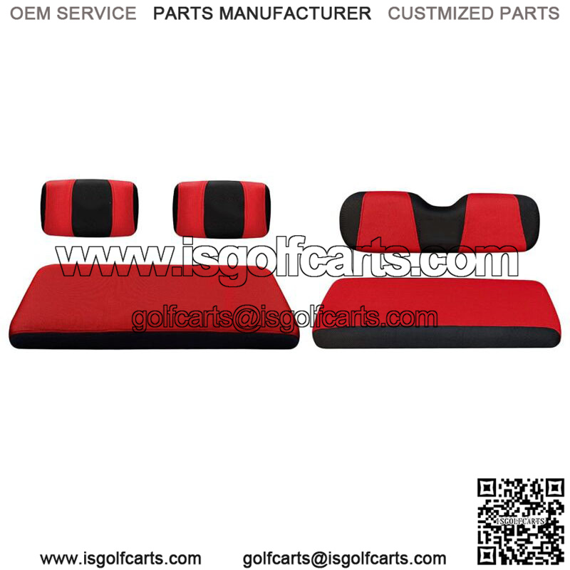 RED Golf Cart Front Rear Seat Covers for Yamaha G2 G8 G9 G11 G14 G16 G19 G20 G22, Club Car DS Pre-2000- Front and rear golf cart seat covers fits 2+2 passenger Yamaha G2 G9 G11 G14 G16 G20 G21 G22, Club Car DS pre-2000, Tomberlin Emerge.- golf cart seat covers made of air mesh breathable fabric polyester, durable, non-slip and anti-static. The golf cart seat cover protects your seat against dirt, sun, extends the life.- Designed in TWO-Tone(Red+black), good for dressing up a new golf cart and renew the golf cart with worn out or scratched seat- Toolleadjustable straps and retractable buckle design help you install easily and remove in minutes. If you feel it is not fit, you can just simply adjust the strap.- Easy to install and clean: It will take you few minutes to install the seat cushion cover kit. Machine washable and air dry.- Package includes: 1 set Front seat cover + 1 set rear seat cover. Front Seat Cover Set:Bottom Seat Cover-Size: 42.5″(L)*21.4″(W)*3.9″(H)One Backrest Cover-Size: 18.5″(L)*10.2″(H)Rear Seat Cover Set:Bottom Seat Cover-Size: 37.5(L)”*13.5″(W)*3.5″(H)Backrest Cover-Size: 35″(L)*9.5″(H)Warm tips:1.The front seat with 2 Separate Backrest, The rear seat with one-piece backrest2. Rear seat is much smaller than front one3. We strongly recommend that you can make measurement before place one order. 1 inch size difference acceptable.