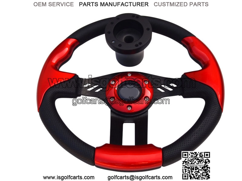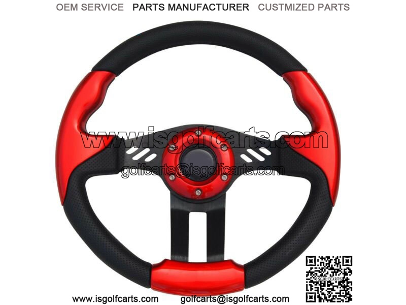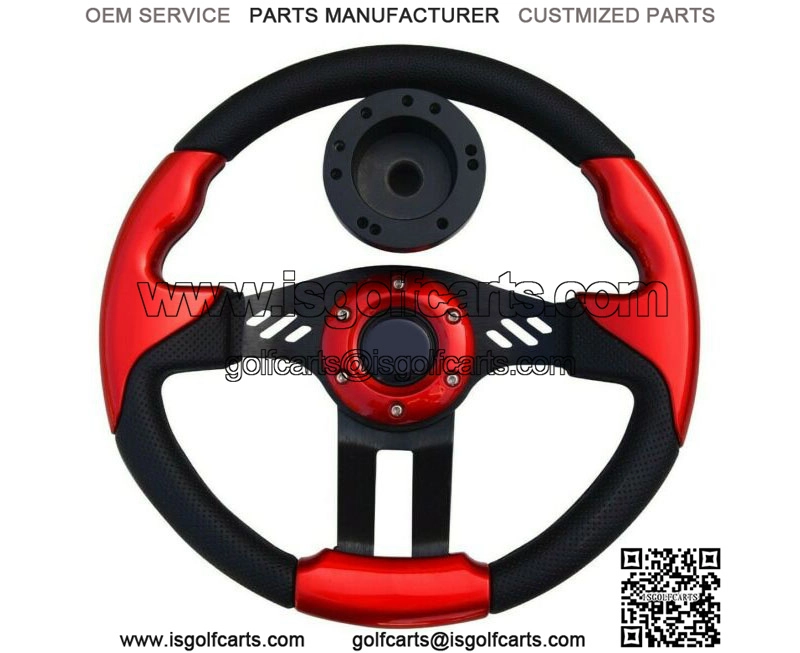 Red Golf Cart Steering Wheel 12.5 OD Comfortable Grip W/ Luxury FeelFits Club Car Precedent 2004-Present Gas / Electric golf cartCustomize and add style to your cart.It has a polyurethane grip with extra urethane coating for better heat resistance and longer life.Stylish brushed aluminum center (black coated)Horn button is for aesthetic purpose only.12.5 Inch DiameterEasy installation, Instructions are included.Steering Wheel Hub Adapter is included.Will ONLY work on Club Car Precedent Golf Carts.WIll NOTworkonClubCar Ds Models.