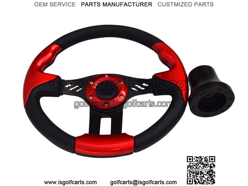 Red Steering Wheel 12.5 OD Comfortable Grip + Club Car Precedent Hub Adapter