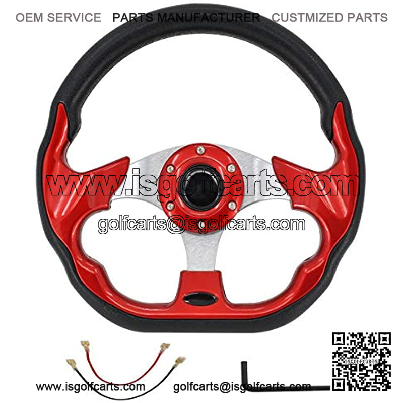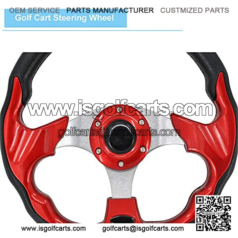 Red Universal Steering Wheel for Compatible with Yamaha Golf Cart Club Car 6 Hole Hub PU Sleeves