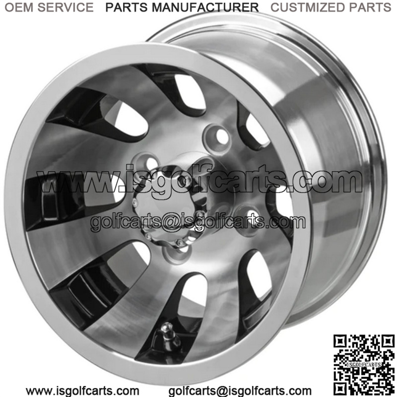 10″ Gunslinger Black & Machined Golf Cart Wheel Center Cap included Wheel Dimensions: 10X7 with 4×4 bolt pattern and 3+4 offset Lug Nuts sold separately