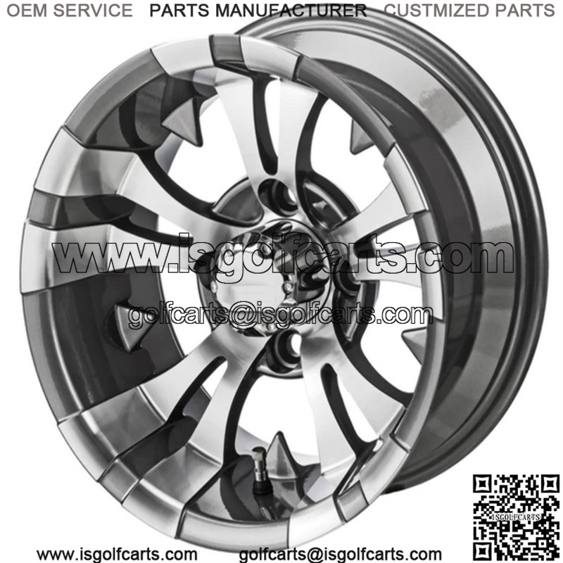 Revenge 10″ Warlock Gun Metal Gray & Machined Golf Cart Wheel 3:4 Offset