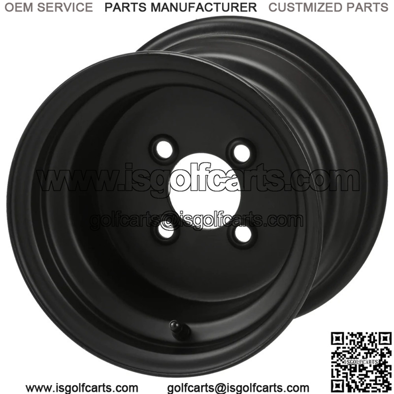 10″ Black Steel Golf Cart Wheel Wheel Dimensions: 10X7 with 4×4 bolt pattern and 3+4 offset Lug Nuts Sold Separately