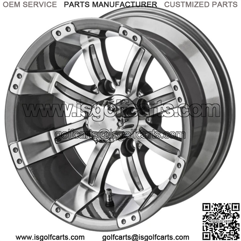 Revenge 12″ Casino Gun Metal Gray & Machined Golf Cart Wheel 3:4 Offset