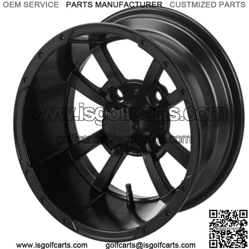 12″ Maltese Cross Matte Black Golf Cart Wheel Center Cap included Wheel Dimensions: 12X7 with 4×4 bolt pattern and 2+5 offset Lug Nuts sold separately