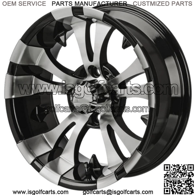 12″ Warlock Black & Machined Golf Cart Wheel Center Cap included Wheel Dimensions: 12X7 with 4×4 bolt pattern and 3+4 offset Lug Nuts sold separately