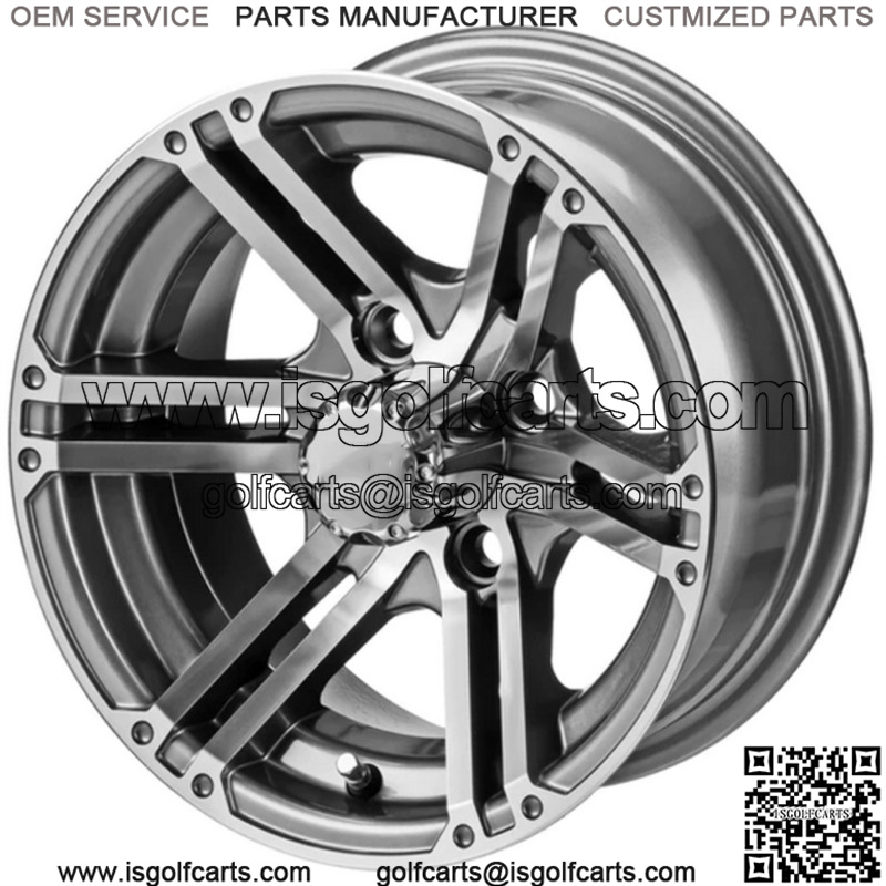 Revenge 12″ Yukon Gun Metal Gray & Machined Golf Cart Wheel 3:4 Offset
