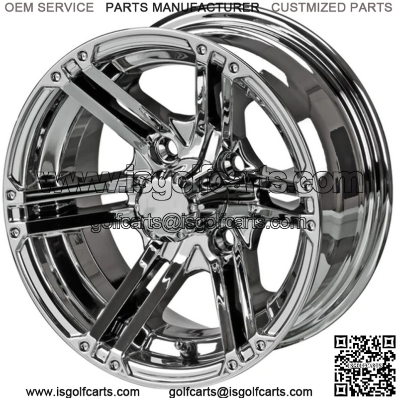 12″ Casino Mirror Golf Cart Wheel Center Cap included Wheel Dimensions: 12X6 with 4×4 bolt pattern and centered offset Lug Nuts sold separately