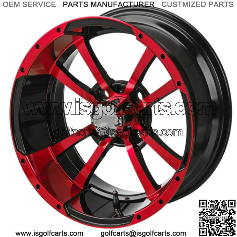 12″ Maltese Cross Black & Red Golf Cart Wheel Center Cap included Wheel Dimensions: 12X7 with 4×4 bolt pattern and 2+5 offset Lug Nuts sold separately
