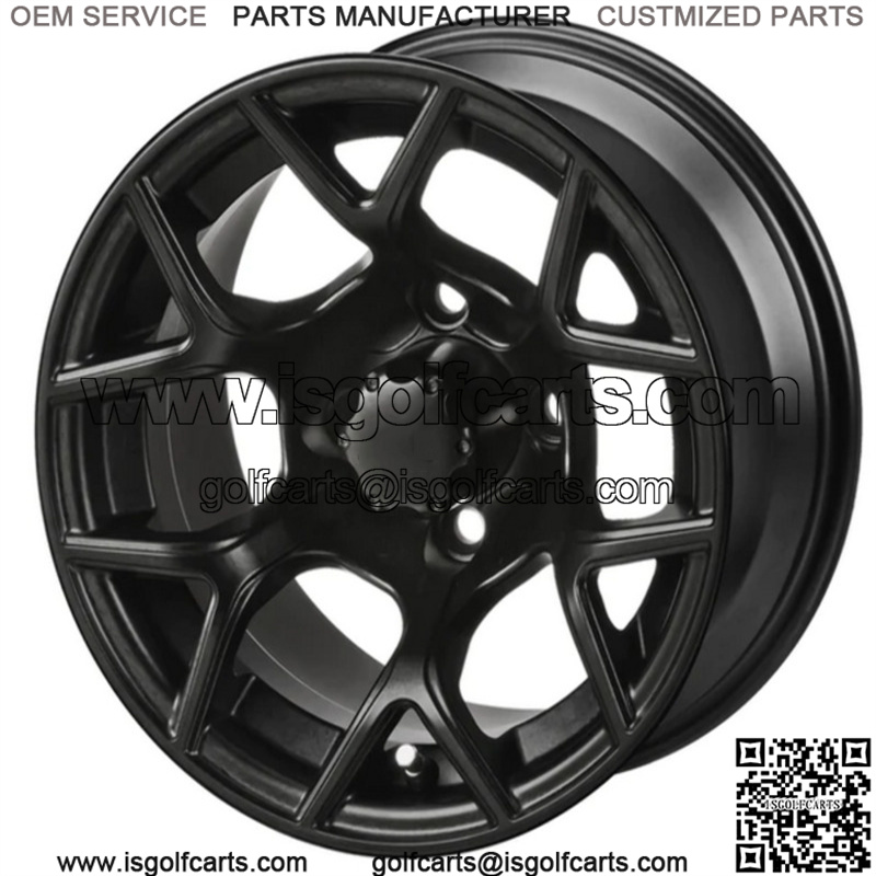 12″ Ninja Matte Black Golf Cart Wheel Center Cap included Wheel Dimensions: 12X7 with 4×4 bolt pattern and 3+4 offset Lug Nuts sold separately