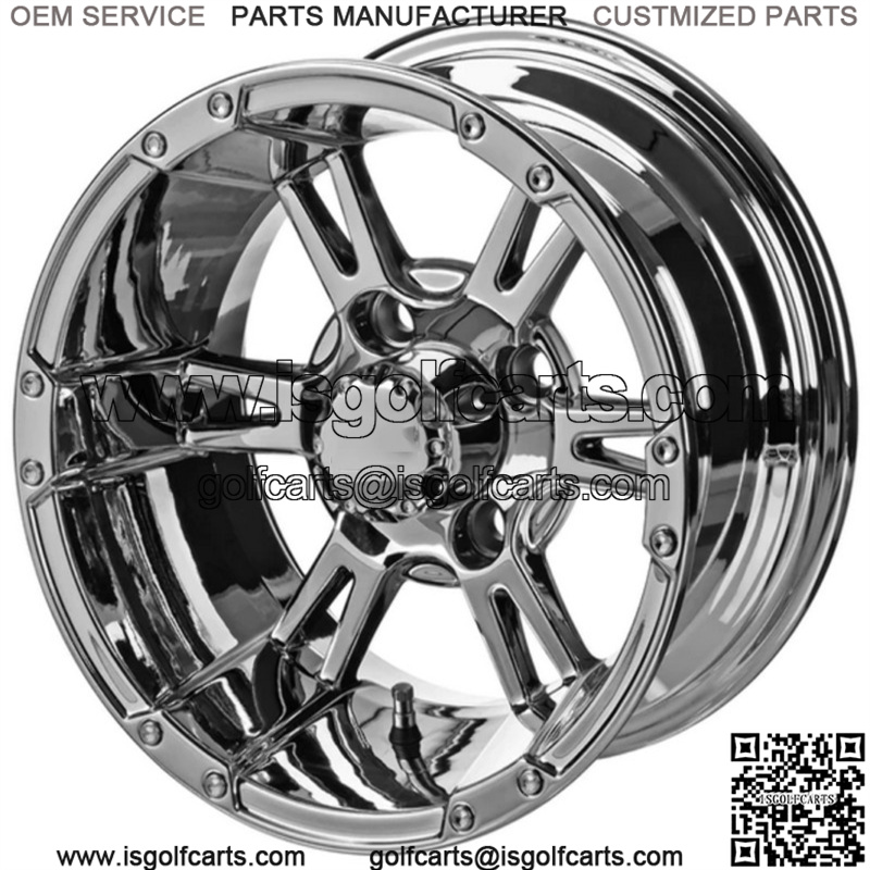 Revenge 12×7 Raptor Chrome Mirror Golf Cart Wheel 3:4 Offset
