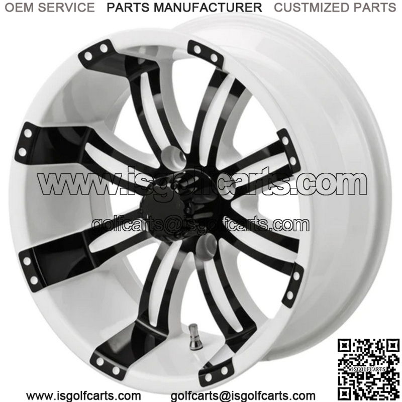 14″ Casino Black & White Golf Cart Wheel Center Cap included Wheel Dimensions: 14X7 with 4×4 bolt pattern and 3+4 offset Lug Nuts sold separately