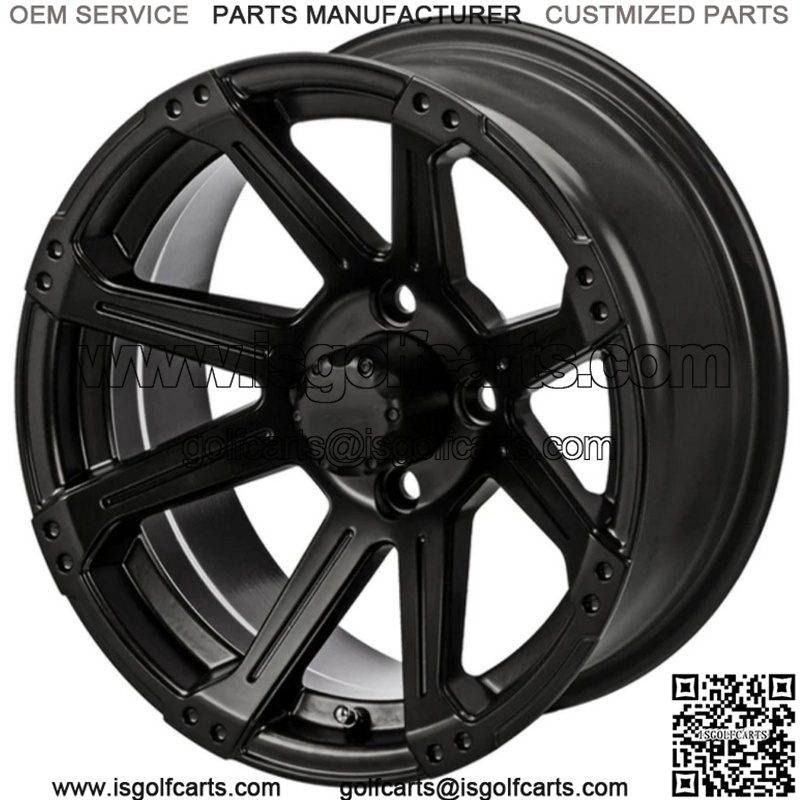 14×7 Rampage Matte Black Golf Cart Wheel 3:4 Offset Center Cap included Wheel Dimensions: 14X7 with 4×4 bolt pattern and 3+4 offset Lug Nuts sold separately