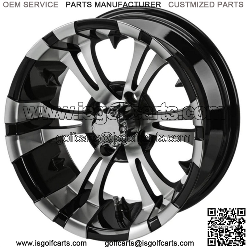 15″ Warlock Black & Machined Golf Cart Wheel Center Cap included Wheel Dimensions: 15X7 with 4×4 bolt pattern and 3+4 offset Lug Nuts sold separately