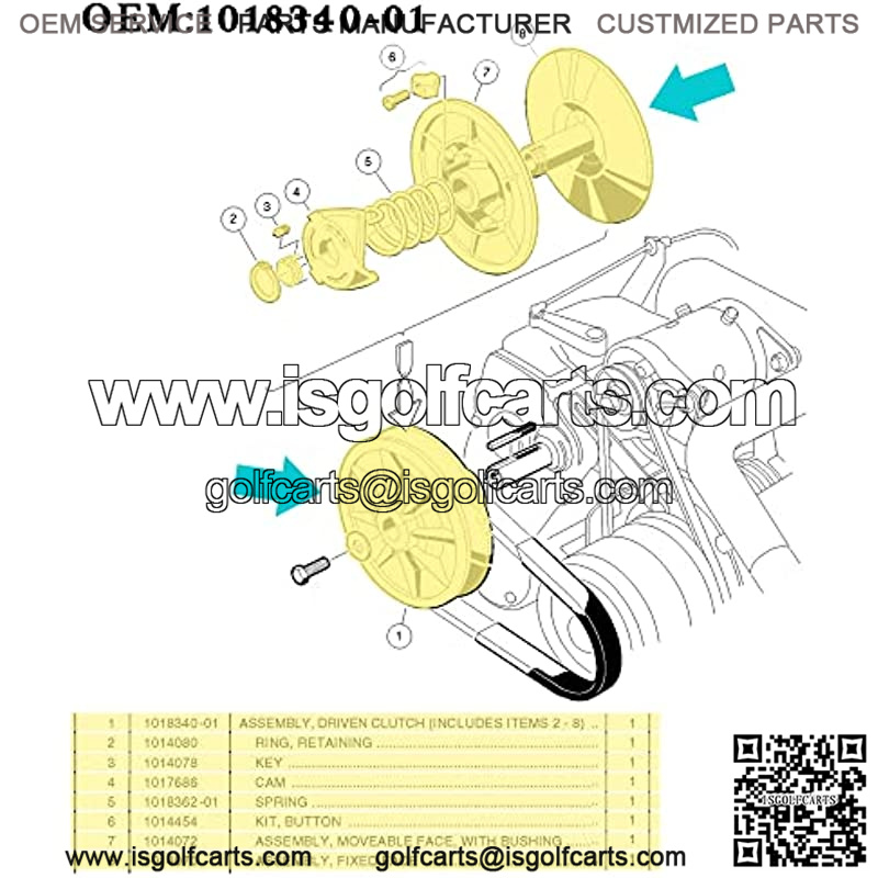 Application: Drive clutch assembly kit Fits 4-Cycle gas Club Car DS 1997-2015, Club Car Precedent 2004-2015 golf cart with Kawasaki FE290 FE350 FE400 engines