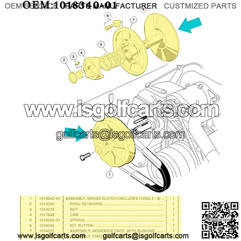 Secondary Driven Clutch for Club Car DS & Precedent 4-Cycle Gas 1997-2015, Carryall Turf XRT 1997-up, Pioneer 2001-2004, Replace OEM 101834001