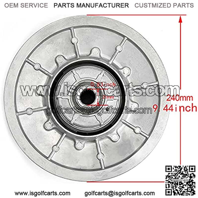 Brand New 36 degree driven clutch Easy to install, direct bolt on. Made of high quality solid aluminum alloy and adopt high pressure casting, durable, and sturdy in use, wear resistance and good heat dissipation. With heat-treated center shaft and balanced sheaves, the performance of our cart driven clutch is very reliable and stable. Direct replacement +++ Die cast unit +++ Machined and balanced +++ Meet the manufacturer’s original equipment specifications