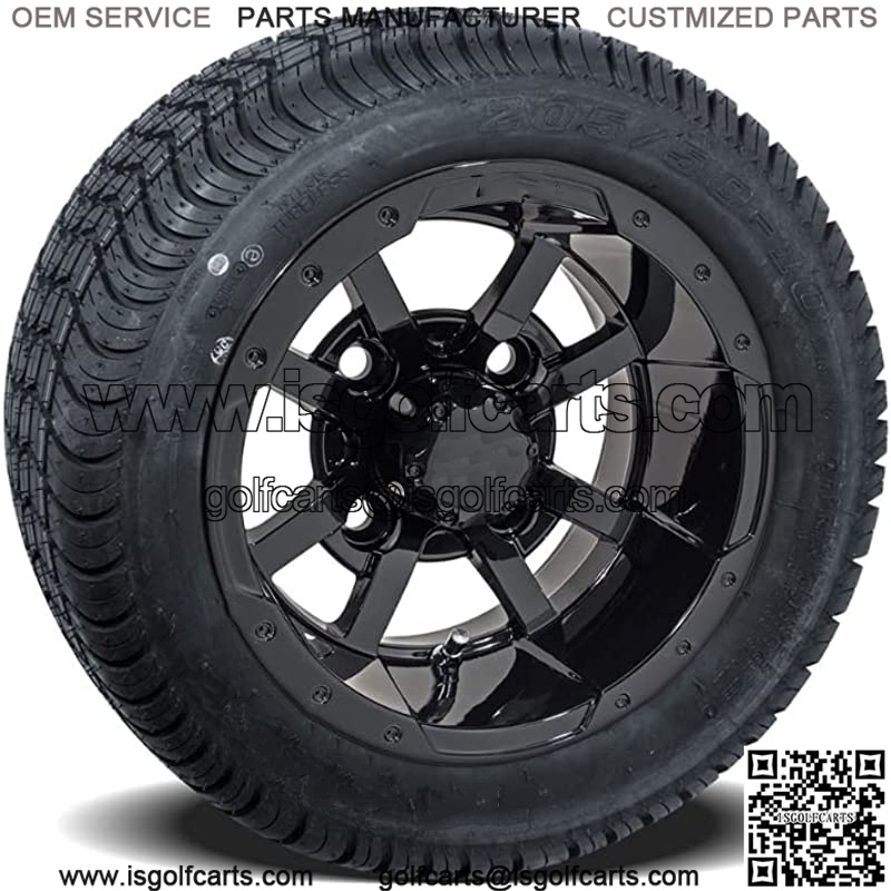 Set of 4 10 inch Storm Trooper Black Golf Cart Wheels On Low Profile Tires
