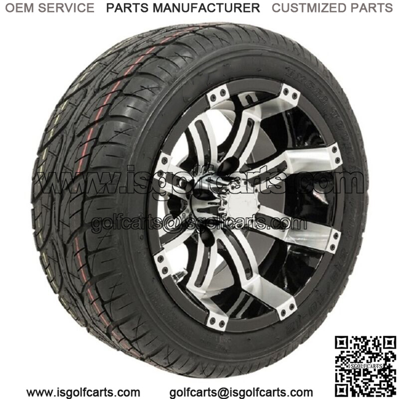 Set of 4 12″ Black/Machined Golf Cart Wheels & 205/30-12 (18″) Tires