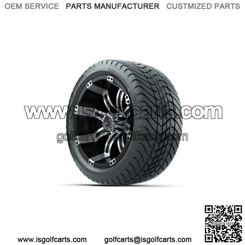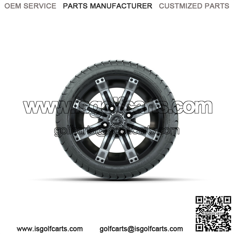 Set of 4 12″ Tempest Black/Machined Golf Cart Wheels & 215/35-12 (18″) Tires