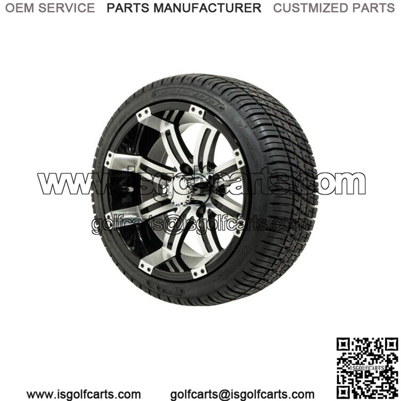 Set of 4 14″ Black/Machined Golf Cart Wheels & 205/30-14 (18″) Tires