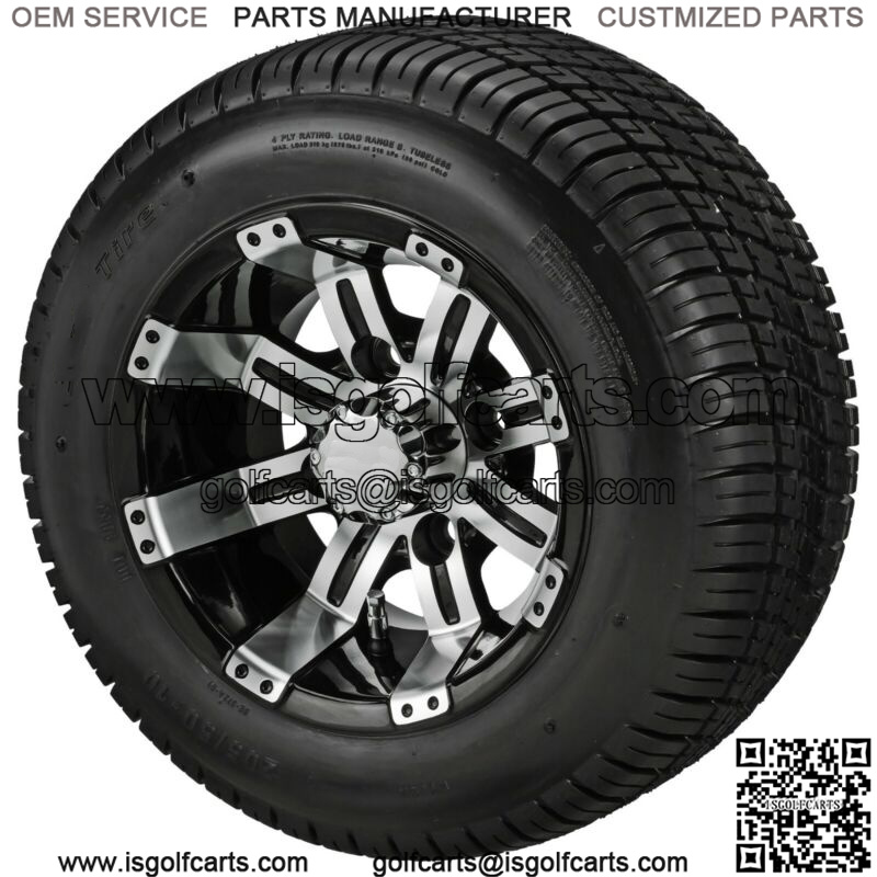 Set of 4 Golf Cart 205/50-10 DOT Tire on 10×7 Black/Machined Wheel