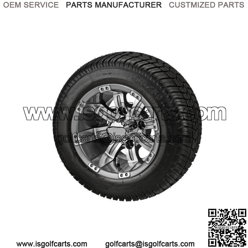 Set of 4 Golf Cart 205/50-10 DOT Tires on 10×7 Gunmetal Wheels