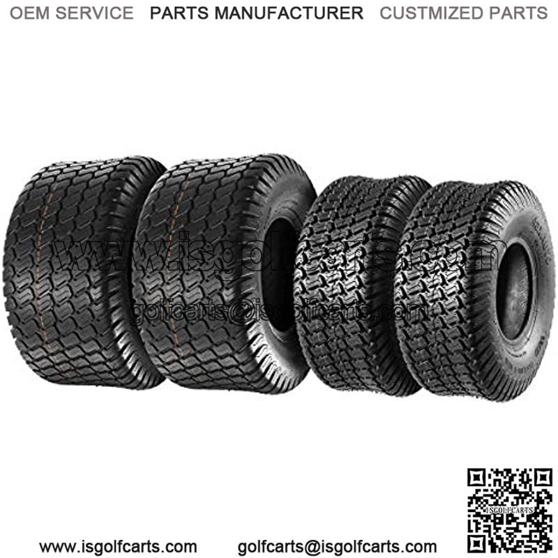 Set of 4 Lawn Mower Turf Tires 15×6-6 Front & 18×9.5-8 Rear Tractor Riding, 4PR, Tubeless