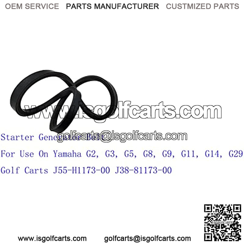 Starter & Generator Belt for Yamaha G2, G3, G5, G8, G9, G11, G14, G29 4 Cycle Gas Carts 1985-1995. This belt replaces part number J55-H1173-00 and J38-81173-00. Belts can dry rot and tear over time and require replacing to ensure your golf cart??s performance. A worn belt will slip and your cart will not be able to run properly until it is replaced. A brand-new, unused, unopened, undamaged item in its original packaging.