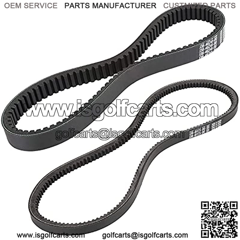 Replace OEM part number: drive v-belt J38-46241-00 / J55-G6241-00/J55-G6241-00-00, starter/generator belt J55-H1173-00/JN6-H1173-00Drive belt: width: 1 1/10″, length: 39 4/5″ OD (roughly); starter generator belt: width: 1/2″, length: 35″ OD (roughly)DO NOT fit Yamaha G29/Drive 2007-2011. Please check your OEM Number before ordering.Belts will tear and slip over time and require replacing to ensure your golf cart’s performance, suggestions replaced per 3 yearsProduct Description Clutch Drive Belt & Starter Generator Belt Kit for Yamaha G2, G5, G8, G9, G14, G16, G22, 2012-up G29 Gas Golf CartDrive Belt – J38-46241-00 / J55-G6241-00 – Measuring roughly 1-1/10″ W x 39 4/5″ ODStarter Generator Belt – J55-H1173-00 / JN6-H1173-00 – Measuring roughly 1/2″ W x 35″ ODWhy replace your worn belt: Belts can dry rot and tear over time and require replacing to ensure your golf cart??s performance. A worn belt will slip and your cart will not be able to run properly until it is replaced