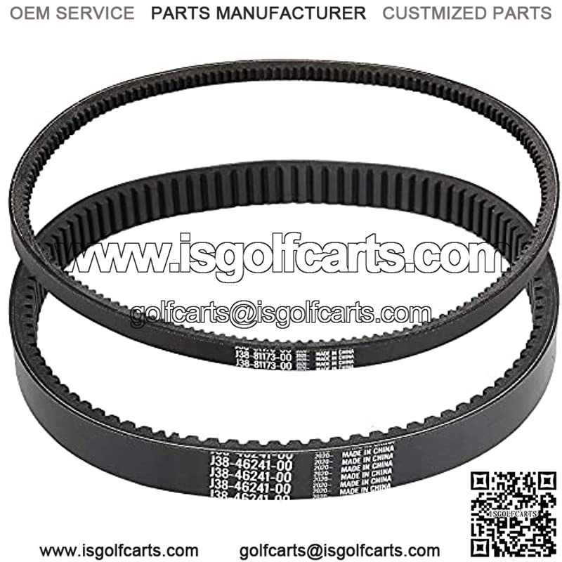 Drive belt and starter/generator belt kit for Yamaha G2 G5 G8 G9 G11 G14 and 2012-up G29 gas golf cartsReplace OEM part number: drive v-belt J55-G6241-00/J55-G6241-00-00, starter/generator belt J55-H1173-00Drive belt: width: 1 1/10″, length: 39 4/5″ OD (roughly)Starter generator belt: width: 1/2″, length: 35″ OD (roughly)Belts will tear and slip over time and require replacing to ensure your golf cart performance, suggestions replaced per 3 yearsPackage Dimensions: 9.09 x 8.66 x 1.69 inches; 15.66 Ounces