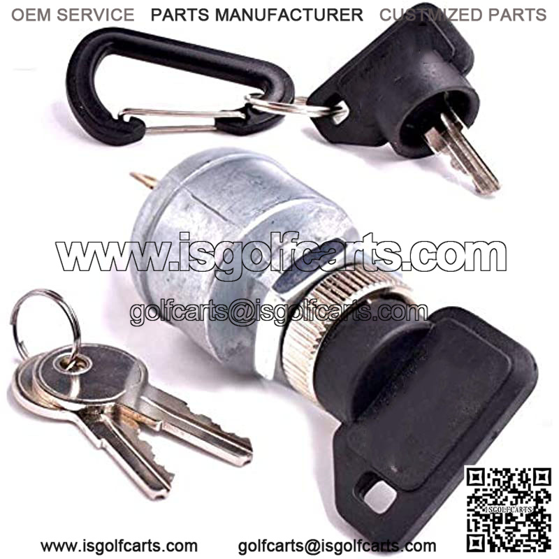 Starter Ignition Switch with Lights Fits EZGO E-Z-GO TXT 33639-G01 33639G01 1981 & Up Golf Cart, Gas or Electric – 4 Prong Terminals – Includes 4 Keys & Free Carabiner