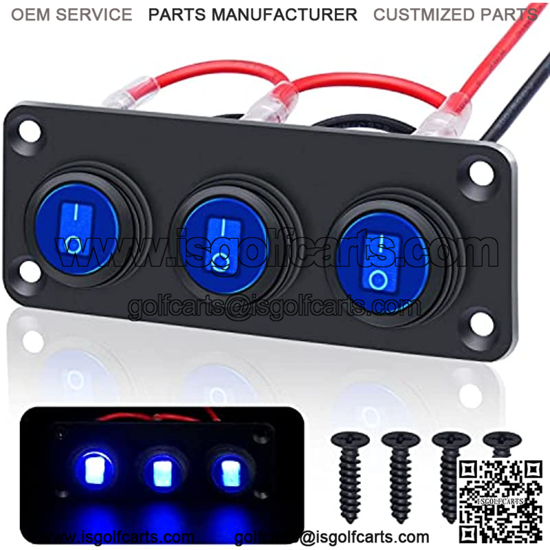 Product name:3 Gang Black Waterproof 12V 20A Rocker Switch Panel 3 Pin On/Off Blue LED Switches.