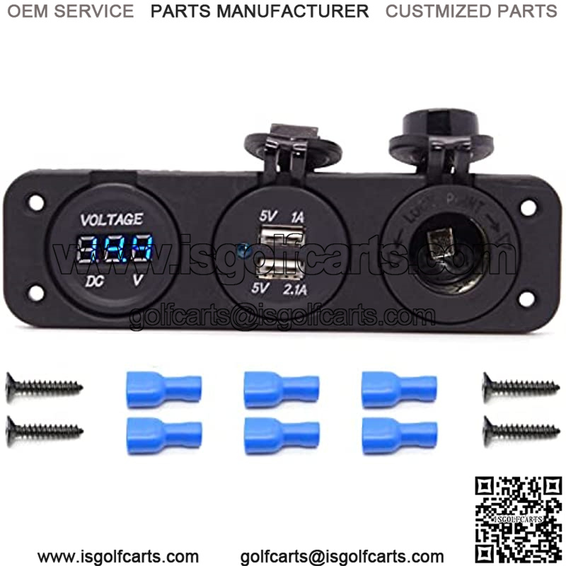 Package includes: 1x Cigarette Lighter Socket + 1x Blue LED Voltmeter + 1x Dual USB Charger+6 x Insulated Terminals+4 x Screws