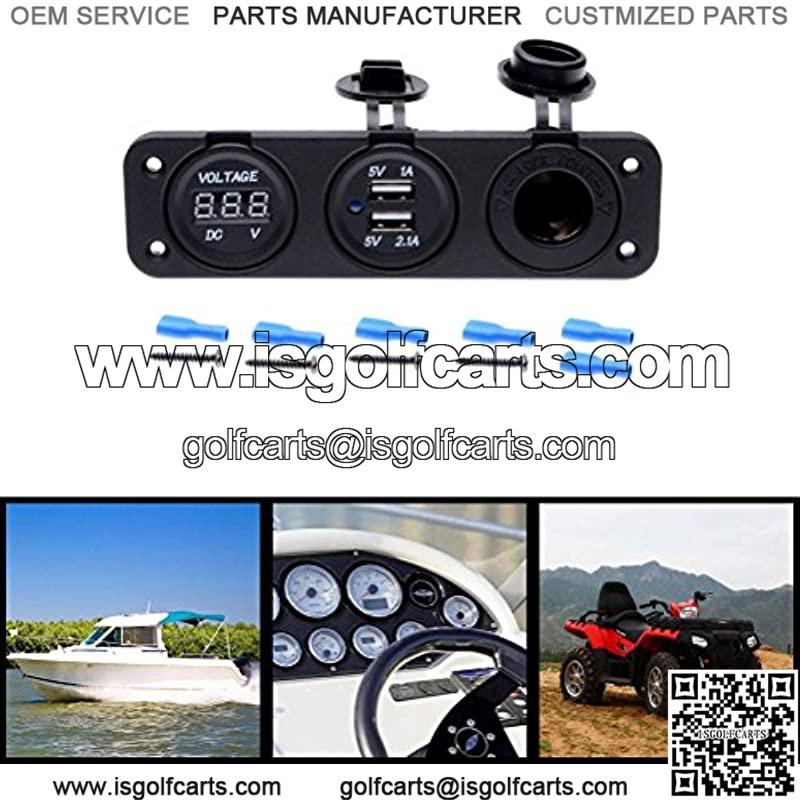 Triple Function Dual USB Charger + Blue LED Voltmeter + 12V Outlet Socket Panel Jack Marine for Digital Devices Mobile Phone Tablet