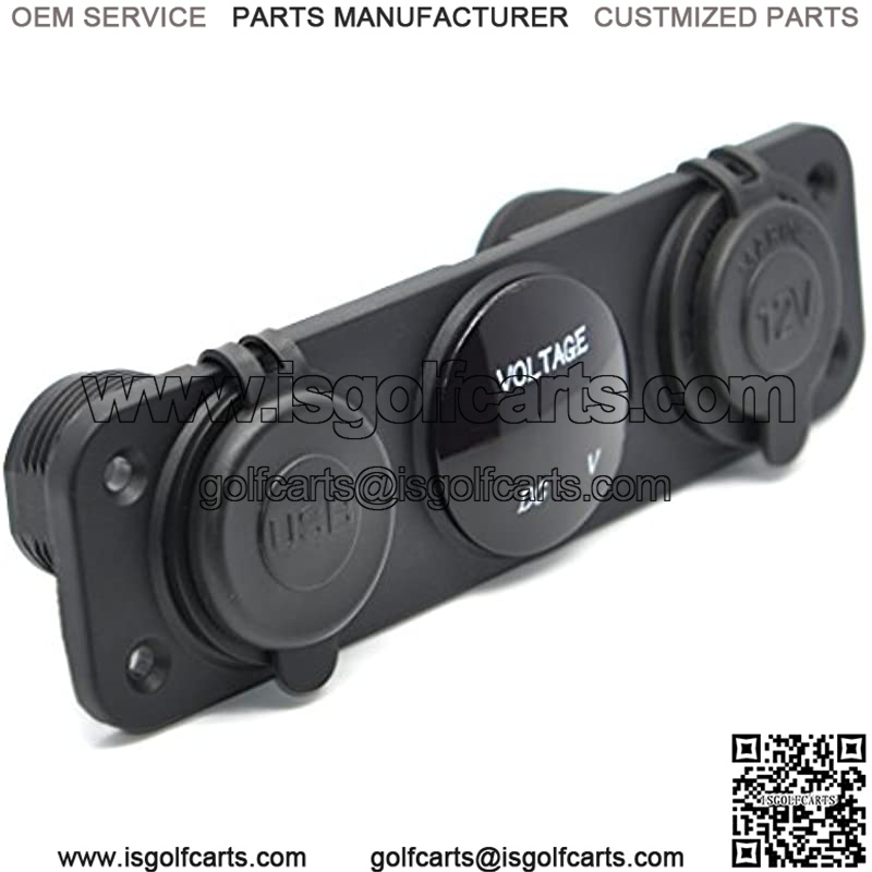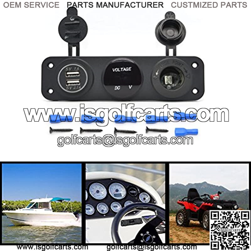Triple Function Dual USB Charger + LED Voltmeter + 12V Outlet Power Socket Panel Jack for Car Boat Marine Digital Devices Mobile Phone Tablet (Red LED)