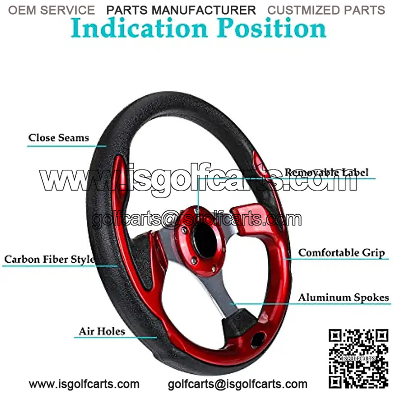 12.5″ Golf Cart Steering Wheel Red For EZGO Club Car Yamaha, Comfortable Grip