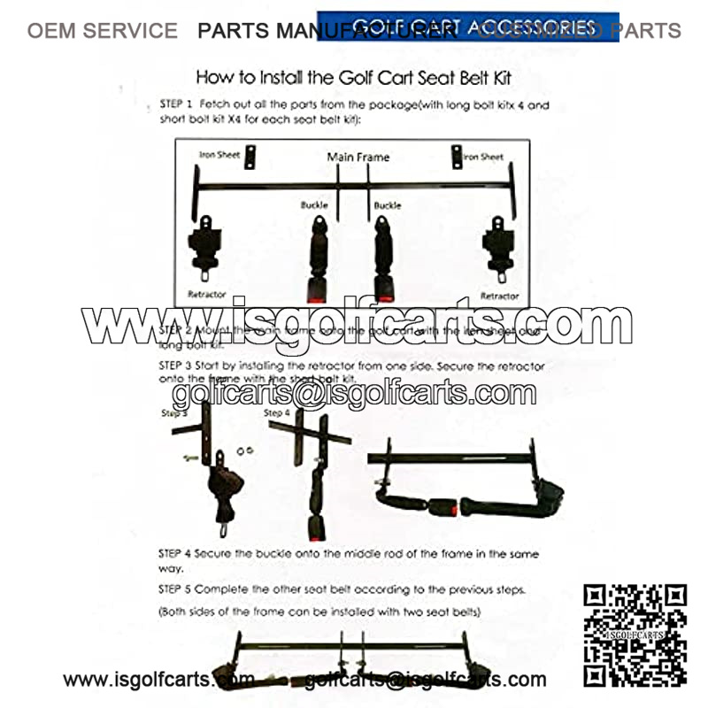Universal 4 Passenger Golf Cart Set Front Rear Golf Cart Seat Belt Kit for EZGO, Yamaha, Club Car