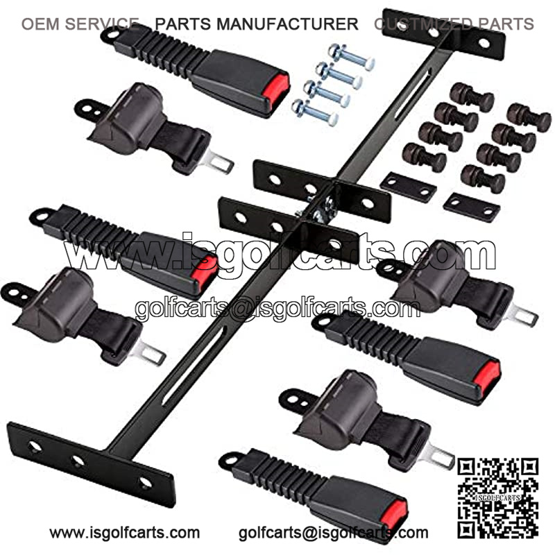 Universal 4 Passenger(2+2) Retractable Front Rear Golf Cart Seat Belt Kit for EZGO, Yamaha, Club Car