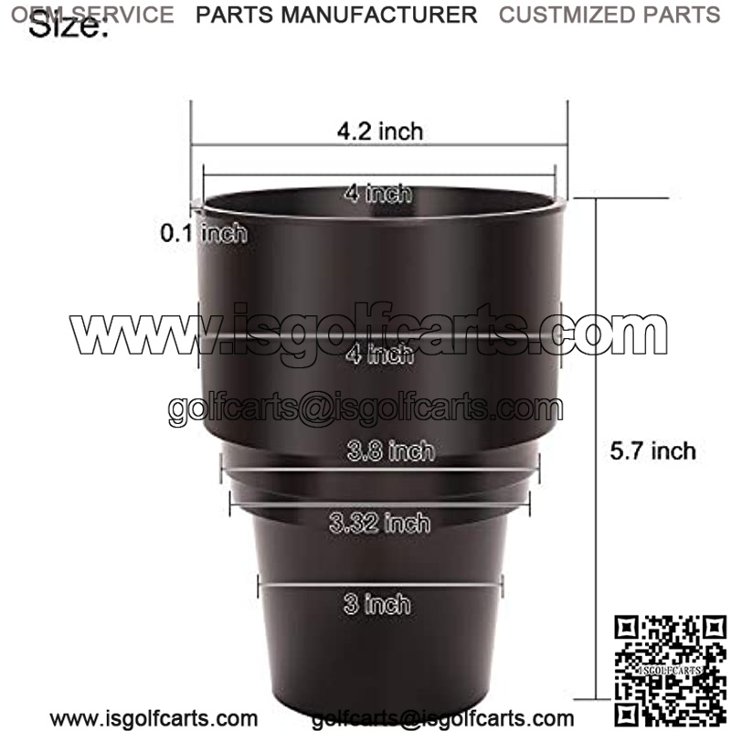 Tapered base that goes from 3.8″ to 3″ to provide a snugger fit most vehicles that have drink holders, great for golf carts, UTV, ATV, motorcycles, boats, car, trucks, and RV’s.
