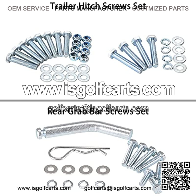 Package include: 1x Golf cart rear seat grab bar, 1x Trailer hook hitch with receiver, All mounting hardware