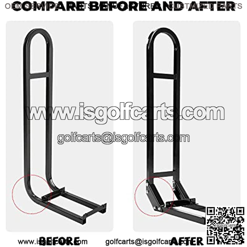 This golf cart rear seat safety grab bar compatible with most EZGO, Club Car and Yamaha. We’ve made a major upgrade to this product. After the product upgrade, the screw fixed at the corner is added, which is more stable and firm than the previous single bending and is not easy to deform.