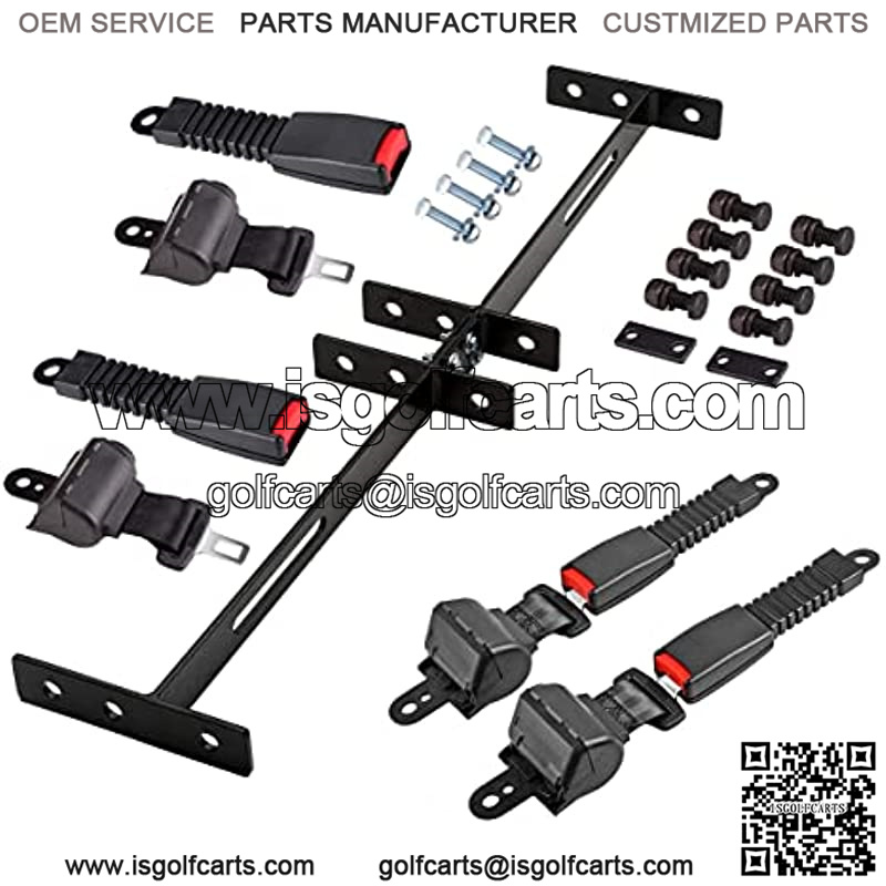 Universal Golf Cart 4 passenger Seat Belts and Bracket for EZGO / Yamaha / Club Car, bracket size: 35″ x 6.9″, retractable belt length: 42″.