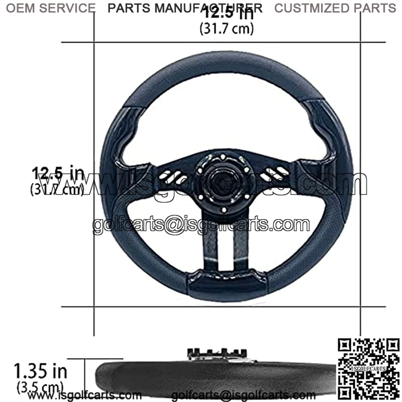 12.5 Inch Diameter Cool EZGO Steering Wheel Fits for EZGO TXT RXV, Club Car DS Precedent, Yamaha G29 Drive Golf Cart Steering Wheel Adapter Hub needs to be purchased separately! Must be installed with Adapter (Required and sold separately) The Car Racing steering wheel is made of carbon fiber material combined with high-quality metal, which is light and durable as a whole, showing the texture The golf Carts Steering Wheel is fully surrounded by Leather, breathable, sweat-absorbent, non-slip and wear-resistant, and feel comfortable EZGO Steering Wheel Will work on any golf cart that has an adapter with a standard 5 or 6 bolt pattern??golf cart steering wheel adapter sold separately??