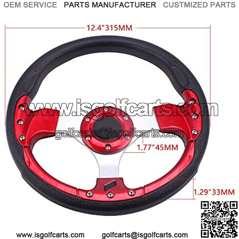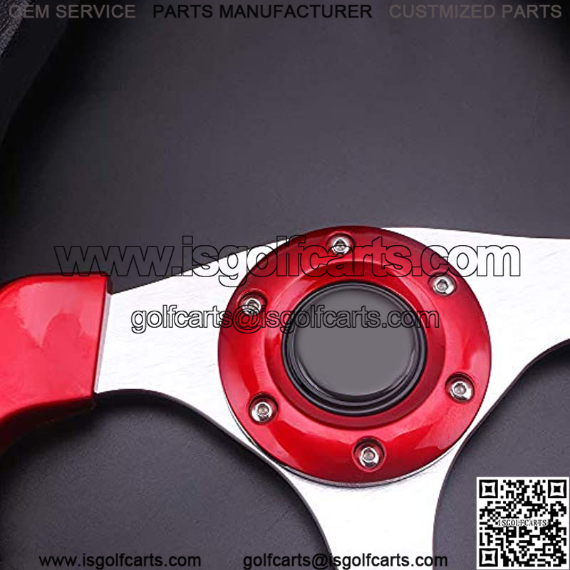 Universal Racing/Golf Cart Steering Wheel 12.5??/320mm 15 Bolts Grip Vinyl Leather & Aluminum with Horn Button for Car& for Club Car DS and Club Car Precedent EZGO Yamaha Golf Carts-Red