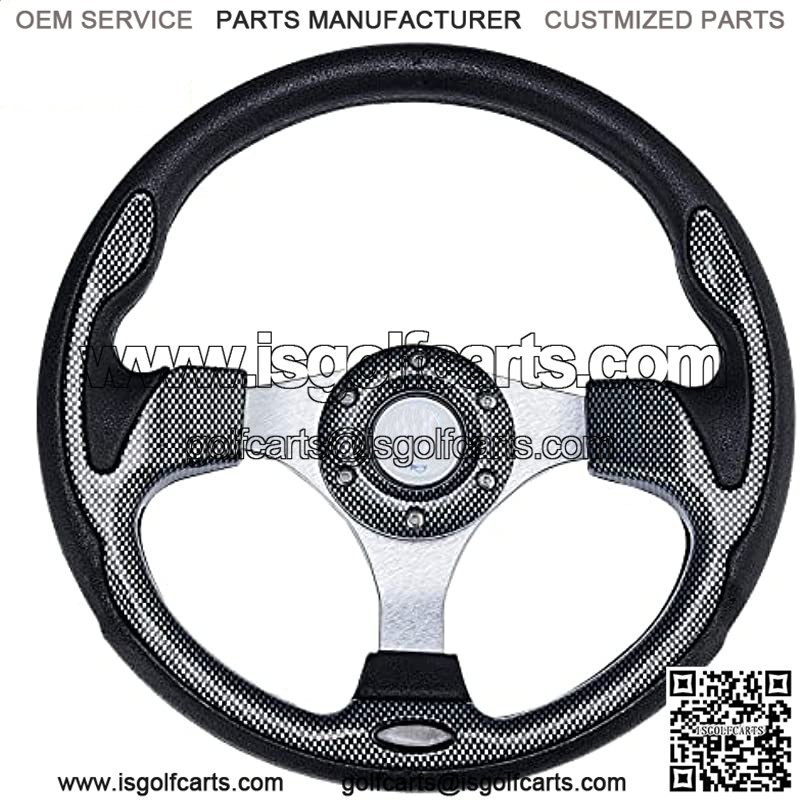 Universal Racing Steering Wheel for Golf Cart, EZGO Yamaha Club Car DS & Precedent , Aluminum with Horn Button for Car, 12.5??/320mm 6 Bolts Grip Vinyl Leather, black & carbon fiber